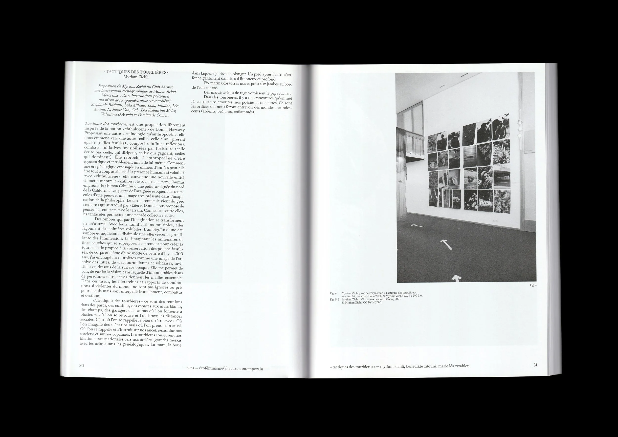 La sociologue Benedikte Zitouni que nous avons accueillie lors d’une journée d’étude en visioconférence en 2021 nous a proposé, suite à cette première rencontre, un projet : celui de partager des récits écoféministes en regard de l’exposition «Tactiques des tourbières» de Myriam Ziehli, organisée au Club 44, sur une invitation de Marie Léa Zwahlen. Structuré en trois étapes, son exposé commence par aborder les récits d’héritage. Elle expose ensuite la façon dont les écoféministes s’opposent à l’idée selon laquelle le monde serait condamné. Finalement, troisième et dernière étape, Benedikte Zitouni aborde le caractère à la fois sombre et joyeux des récits écoféministes.